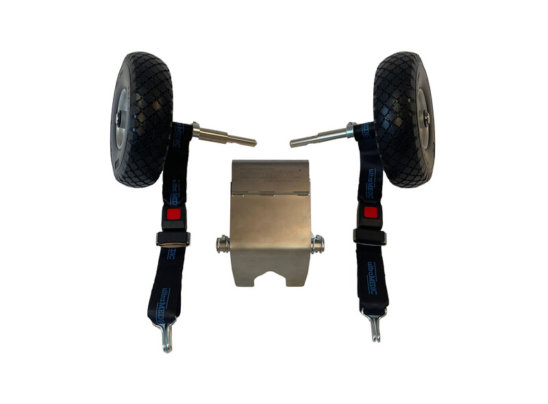 Das Fahrwerk besteht aus einer vollständig abnehmbaren Basisplatte aus Edelstahl sowie zwei Steckachsen mit Rad, die für den Einsatz mittels Splint an die Basisplatte schnell und flexibel angebracht werden können. Die Räder bestehen aus robustem Vollmaterial Polyurethan (PU). Ideal zum werkzeugfreien Nachrüsten von bereits bestehenden ultraMEDIC Korbtragen.