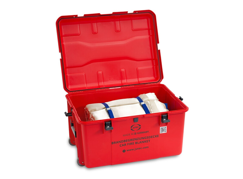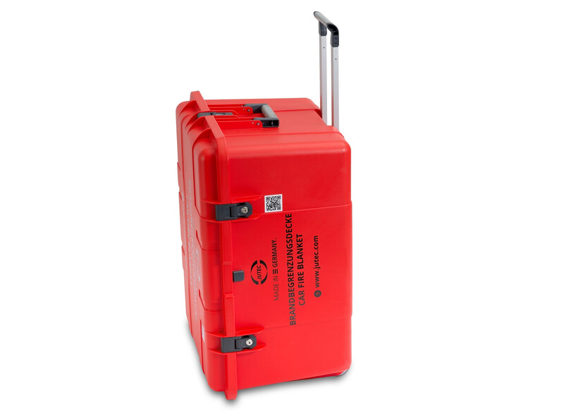 Die Autolösch-/Brandbegrenzungsdecke von JUTEC wurde speziell für die Prävention und Bekämpfung von Bränden bei Elektroautos entwickelt.