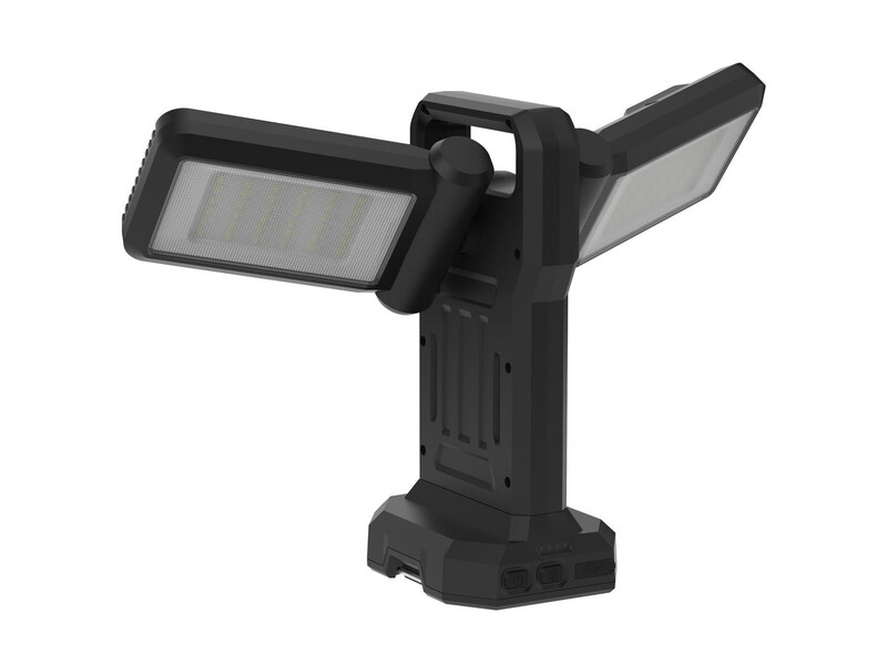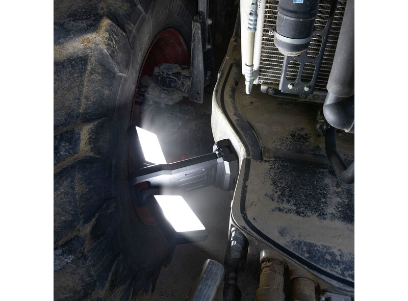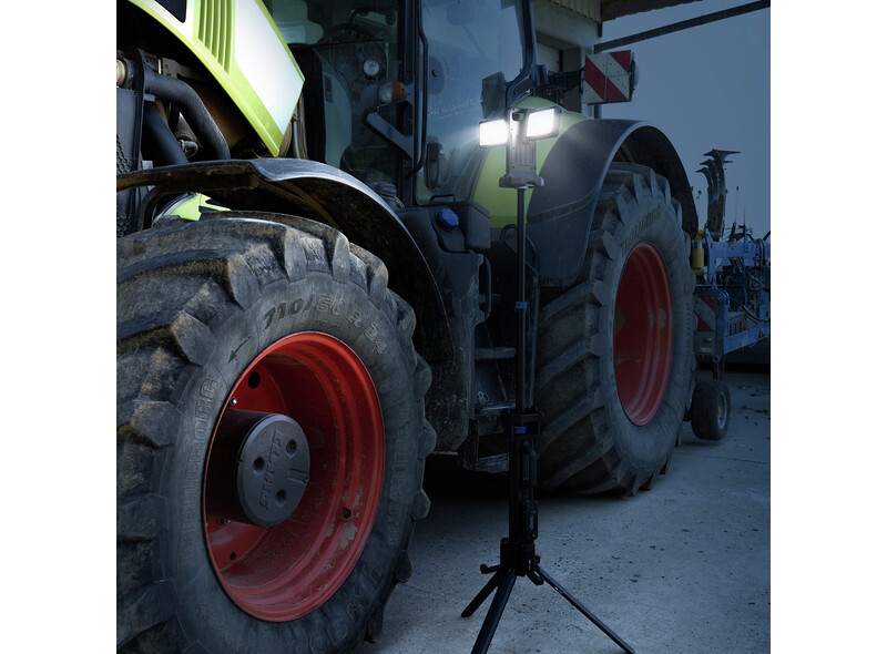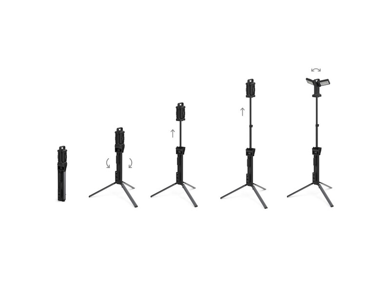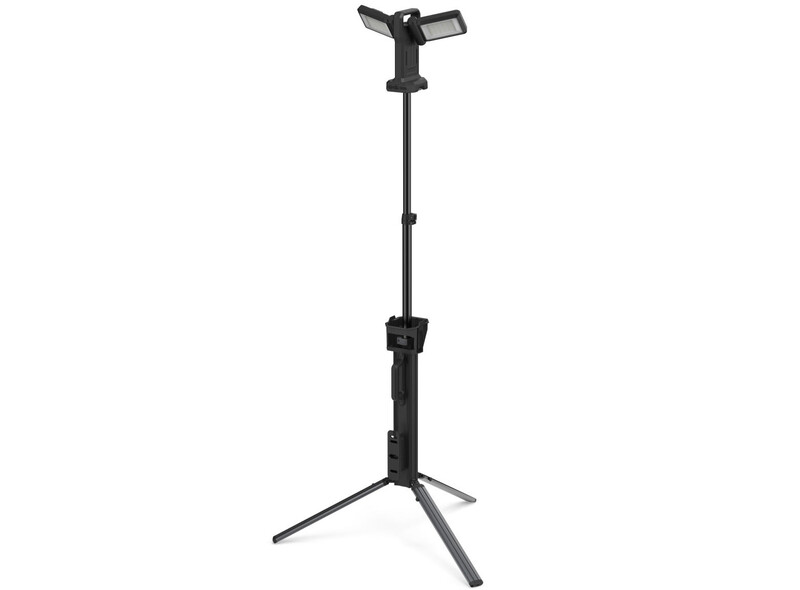 • Kompakte, robuste und hochwertige Akku-Arbeitsleuchte mit 2 unabhängig beweglichen LED-Leuchtmodulen und inklusive Stativ.