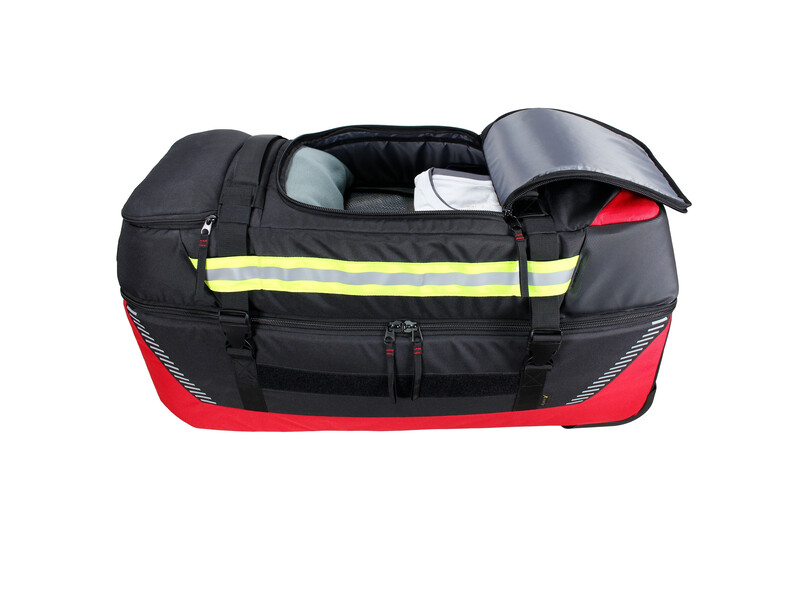 Eine besondere Stärke ist das große, über 25 Liter fassende Stiefelfach im unteren Hauptfach. Es ermöglicht die hygienisch getrennte Lagerung von Stiefeln bis Größe 50 oder getragener bzw. nasser (Einsatz-)Kleidung in der Tasche. Bei Bedarf oder zur Reinigung kann das, mit Klett fixierte Stiefelfach einfach entnommen werden.