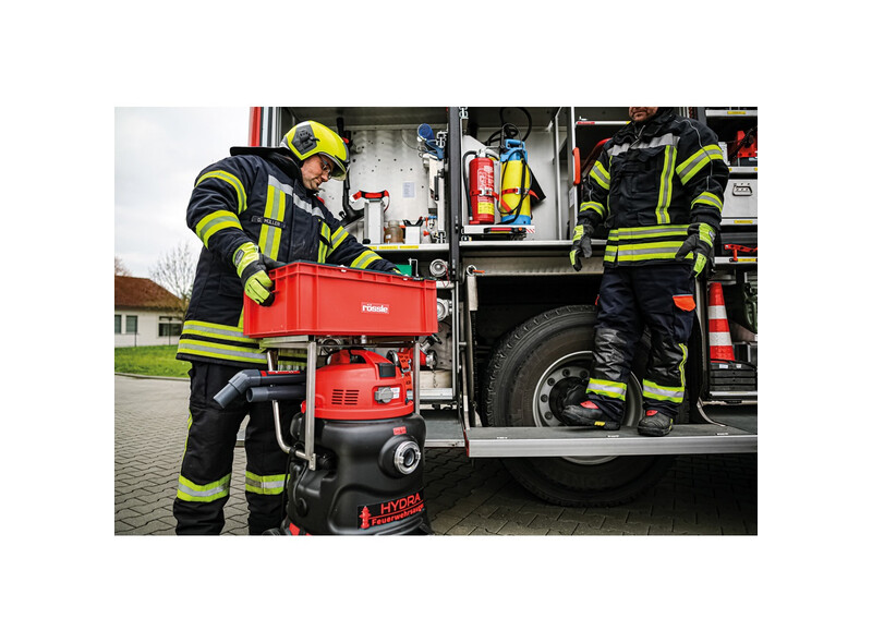 Der leistungsstarke Feuerwehrsauger HYDRA-Z von Rössle besitzt ein speziell auf die Bedürfnisse von Betriebs- und Werksfeuerwehren entwickeltes Zusatzpaket mit ölbeständigem Zubehör.