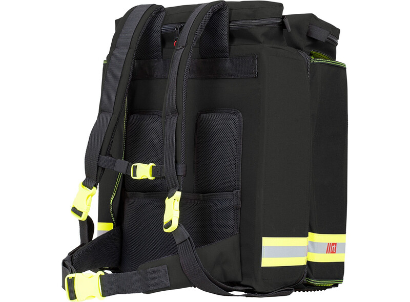 Das ausgereifte Schultergurt-System erlaubt das Tragen als Rucksack. Für die Unterbringung im Fahrzeug ist das Schultergurt-System in einem Einschubfach verstaubar. Eine individuelle Kennzeichnung mit einem Reflexschild (300 x 50 mm) ist auf der Vorderseite möglich.