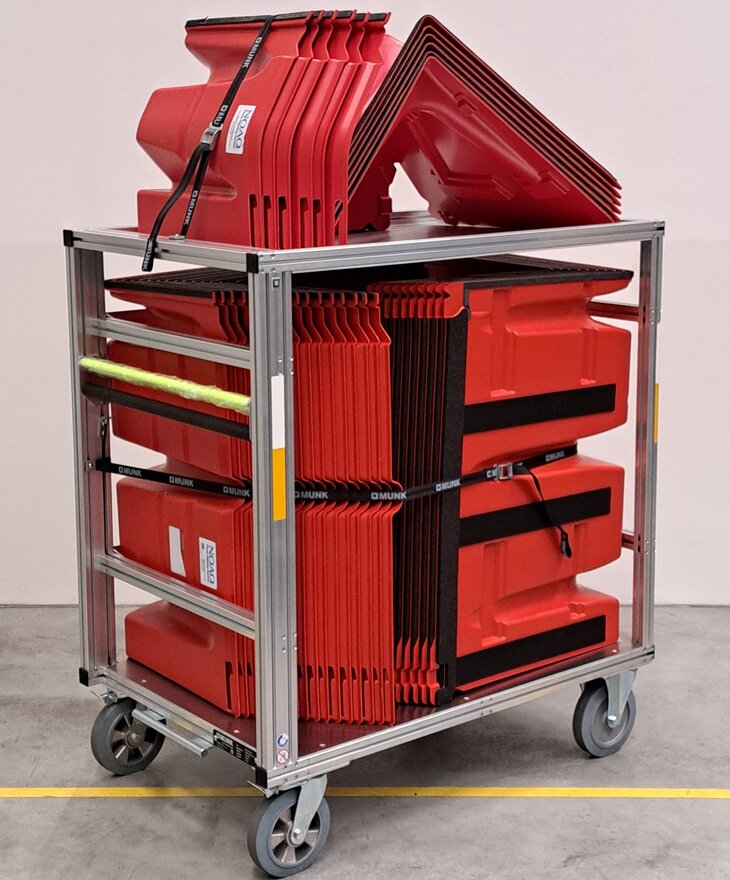 Das Gewicht pro Laufmeter beträgt nur einen Bruchteil eines vergleichbaren Schutzwalls aus Sandsäcken. Dies ermöglicht einen extrem raschen und einfachen Aufbau bei geringstem Personaleinsatz.