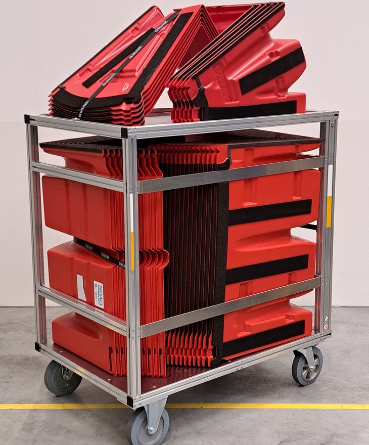 einfach und platzsparend zu lagern (stapelbar)