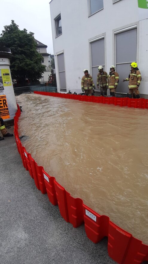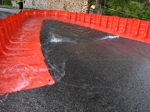 universell einsetzbar: sowohl bei langsam steigenden Wasser-Pegeln an Flüssen und Bächen, als auch bei schnell fliessendem Wasser (z.B. Überflutungen durch Hangwasser, Starkregen, Sturzflut etc.)